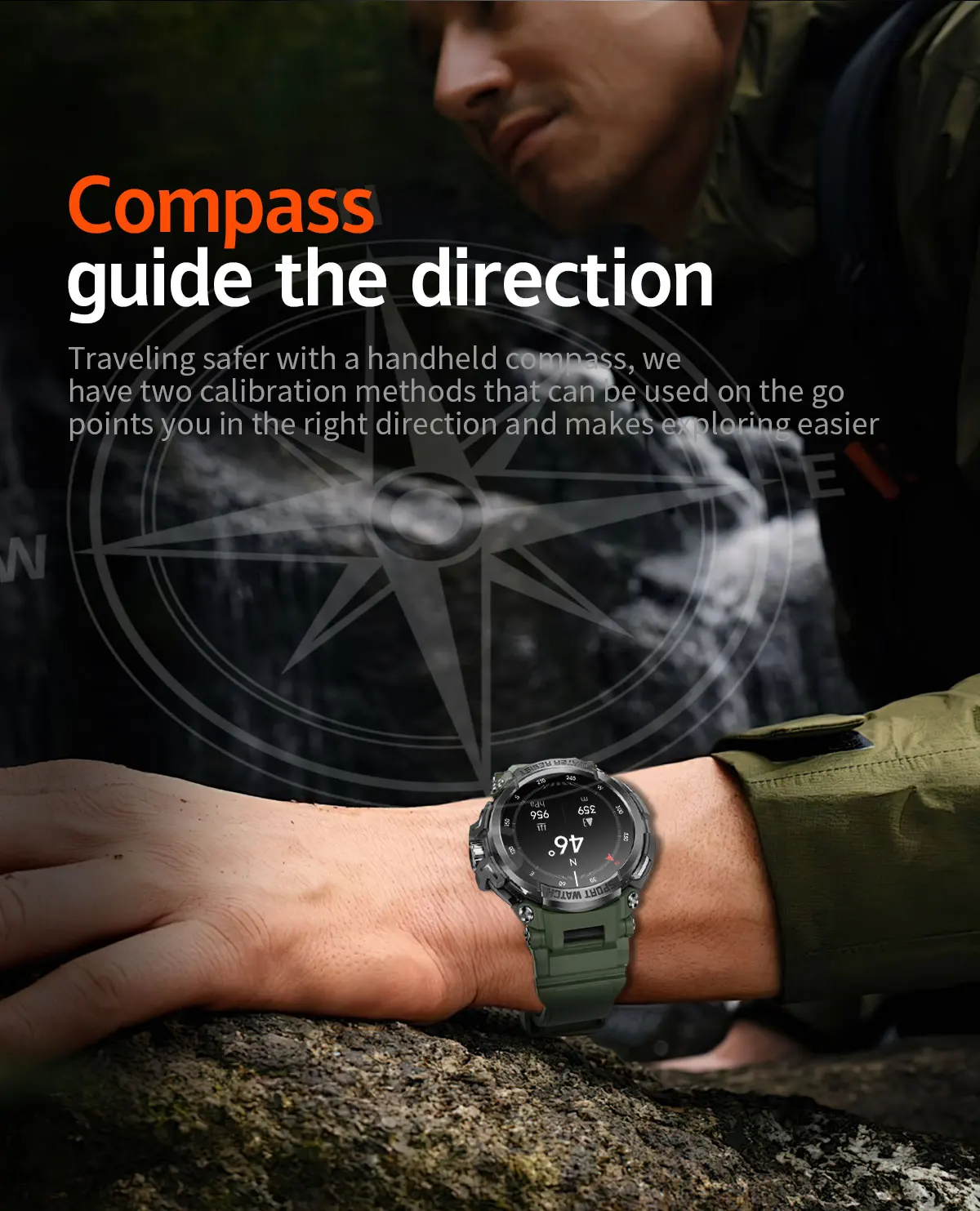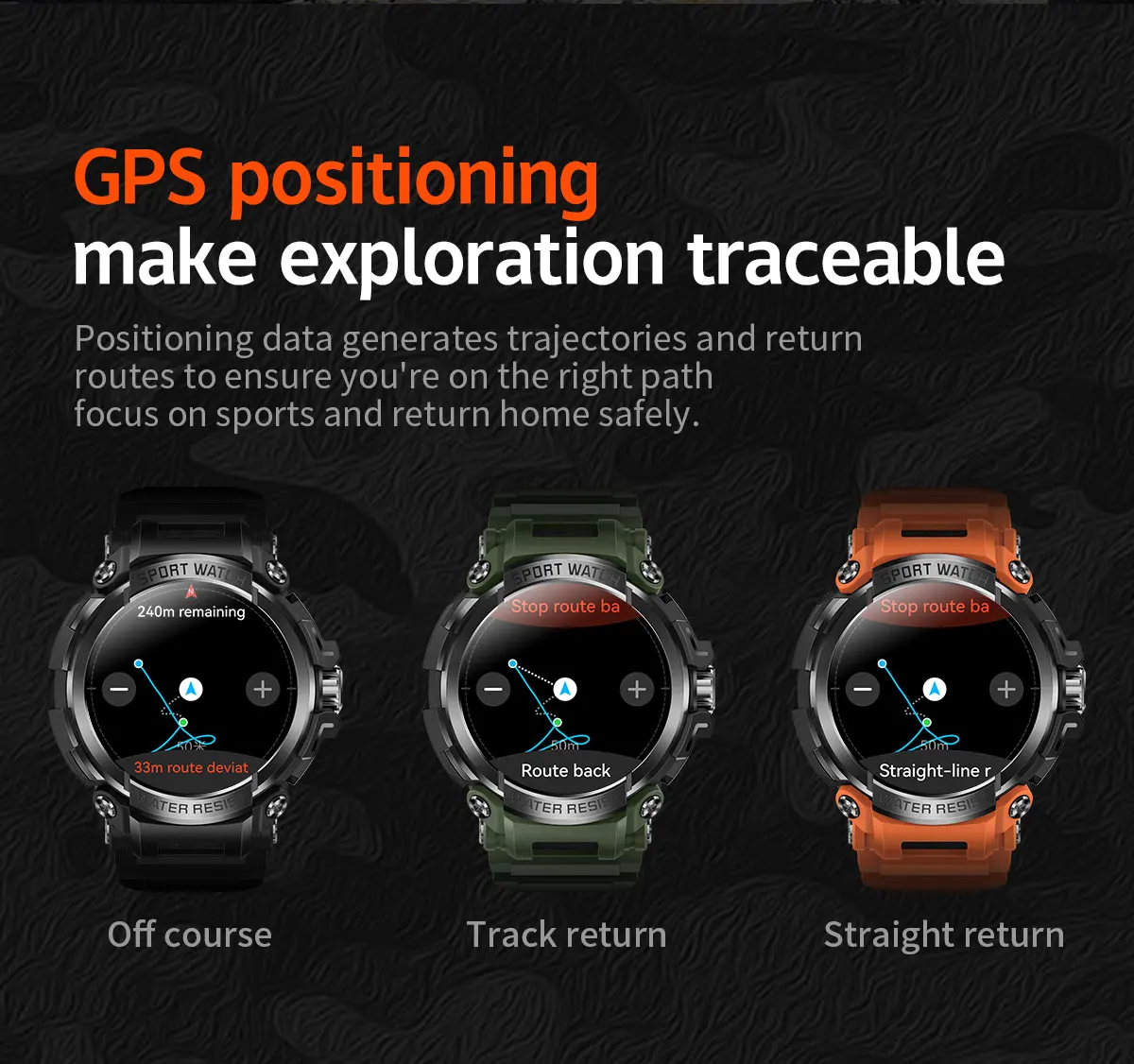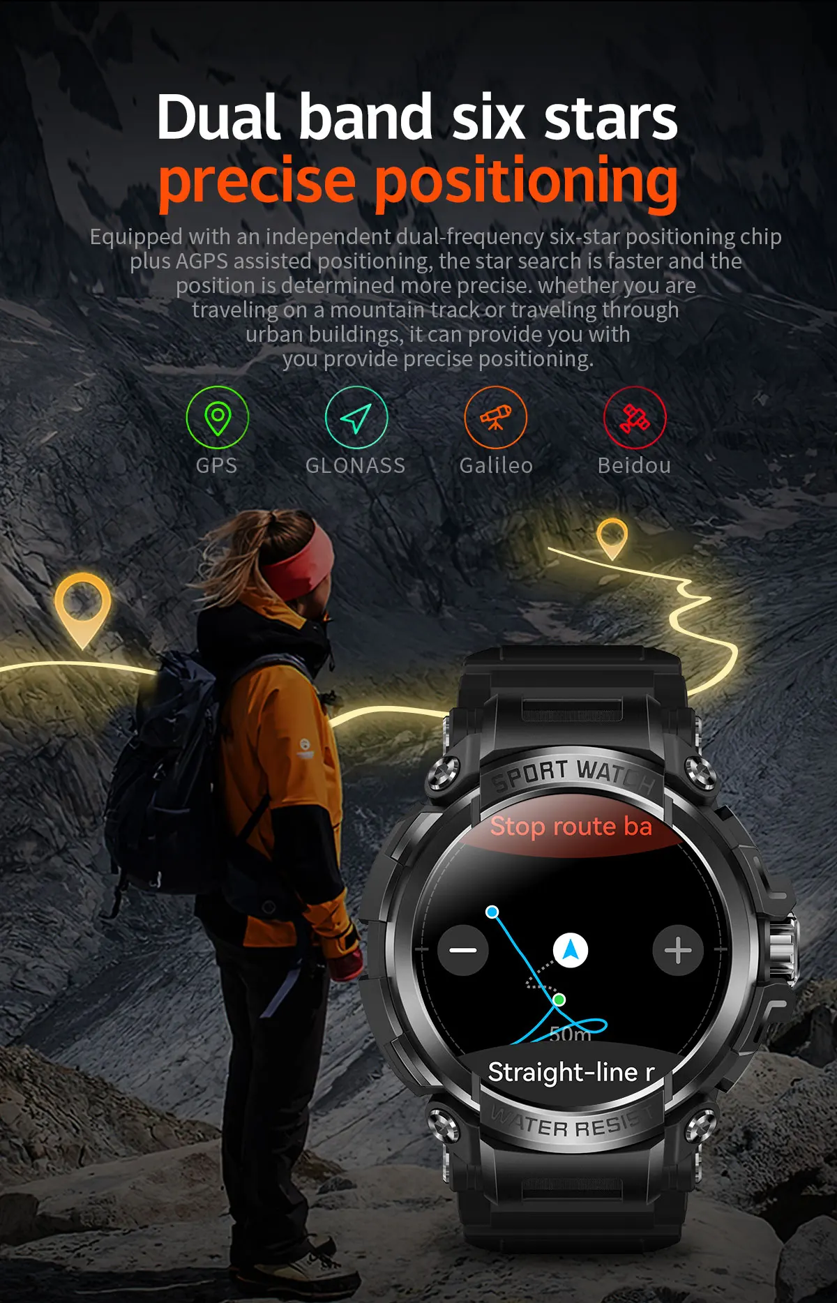 Equipped with dual-band GPS (L1+L5), 6-satellite positioning, a barometric altimeter, and an integrated compass, Altigear® gives you precise tracking in the most remote environments. With Bluetooth calling, heart rate and SpO₂ monitoring, stress tracking, and AI voice assistant, it's your ultimate outdoor companion.