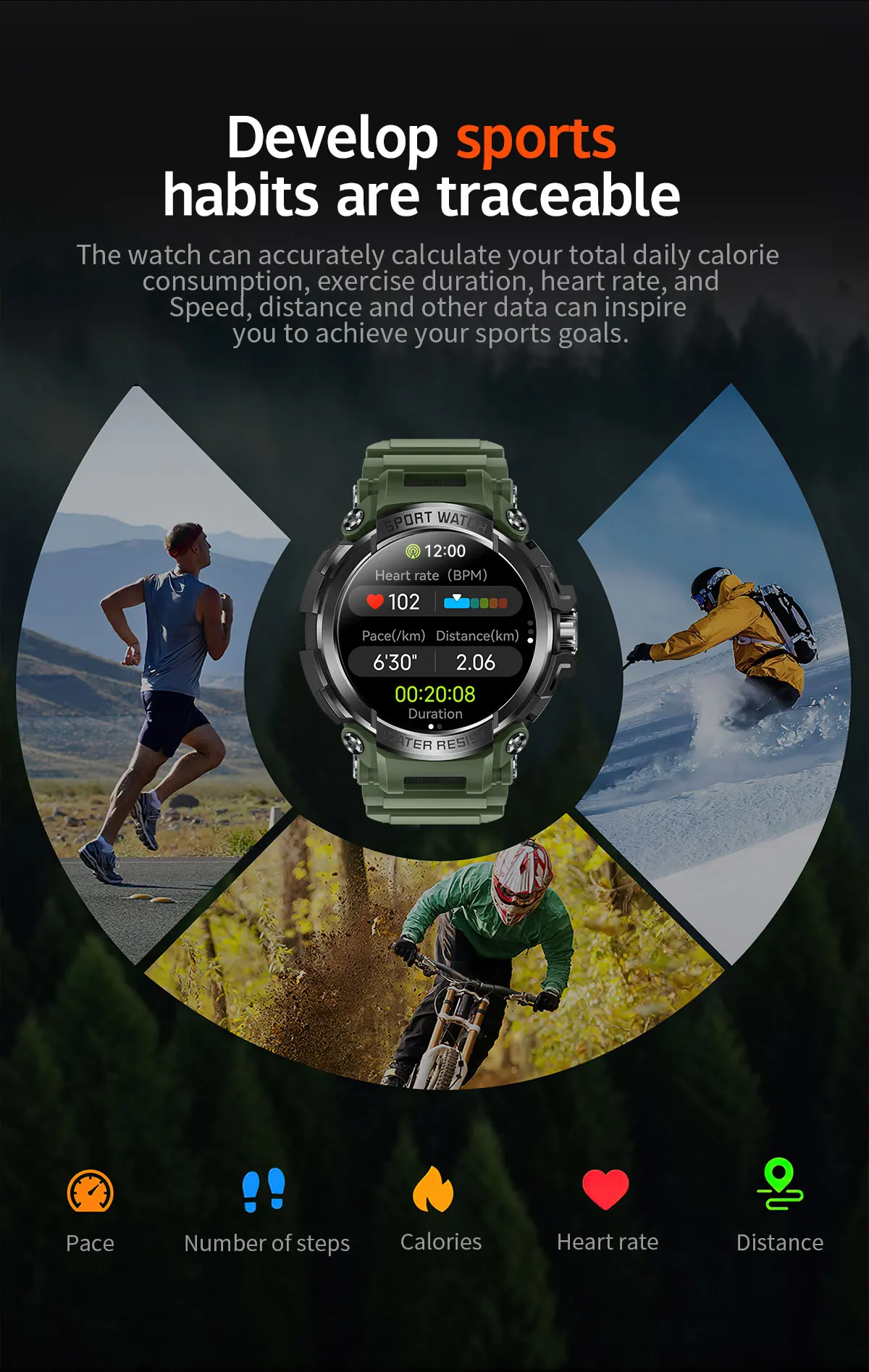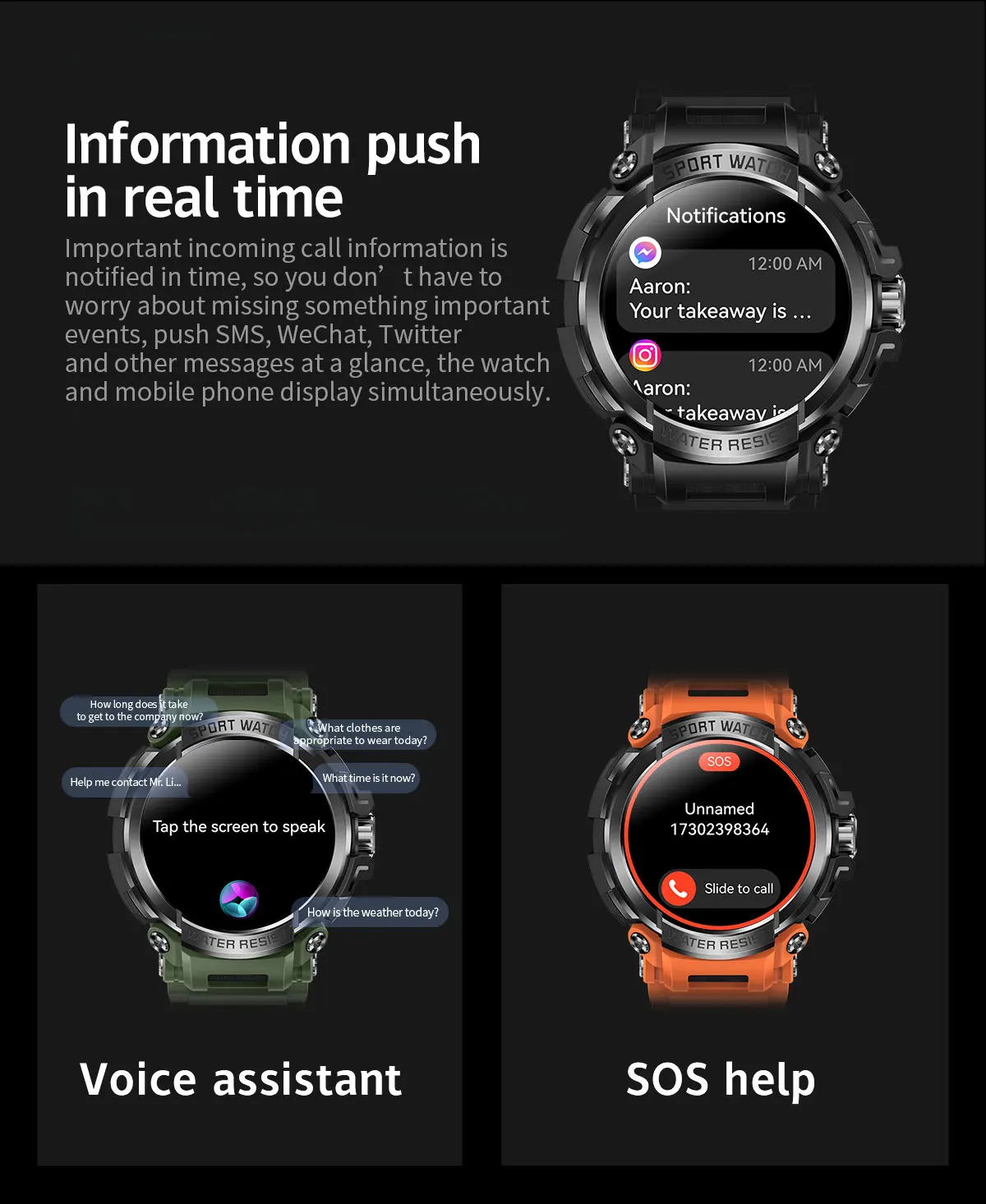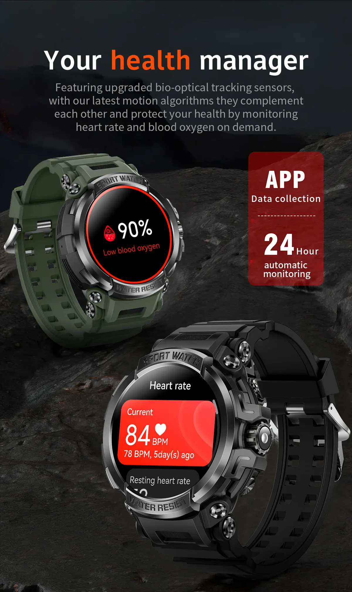 Equipped with dual-band GPS (L1+L5), 6-satellite positioning, a barometric altimeter, and an integrated compass, Altigear® gives you precise tracking in the most remote environments. With Bluetooth calling, heart rate and SpO₂ monitoring, stress tracking, and AI voice assistant, it's your ultimate outdoor companion.