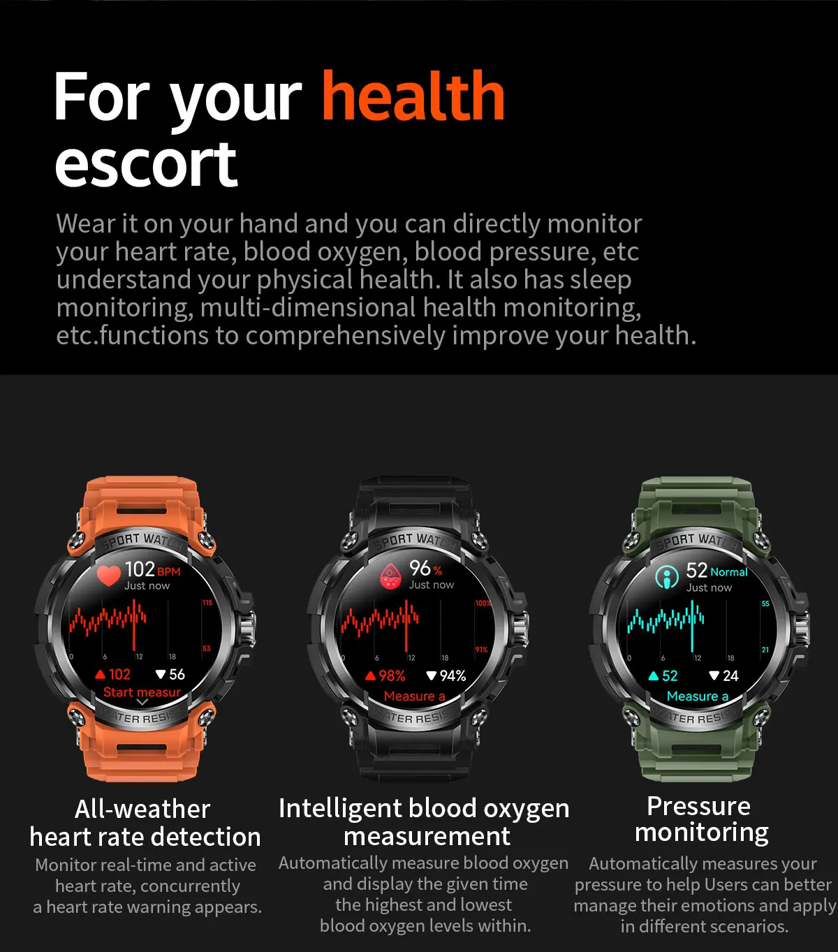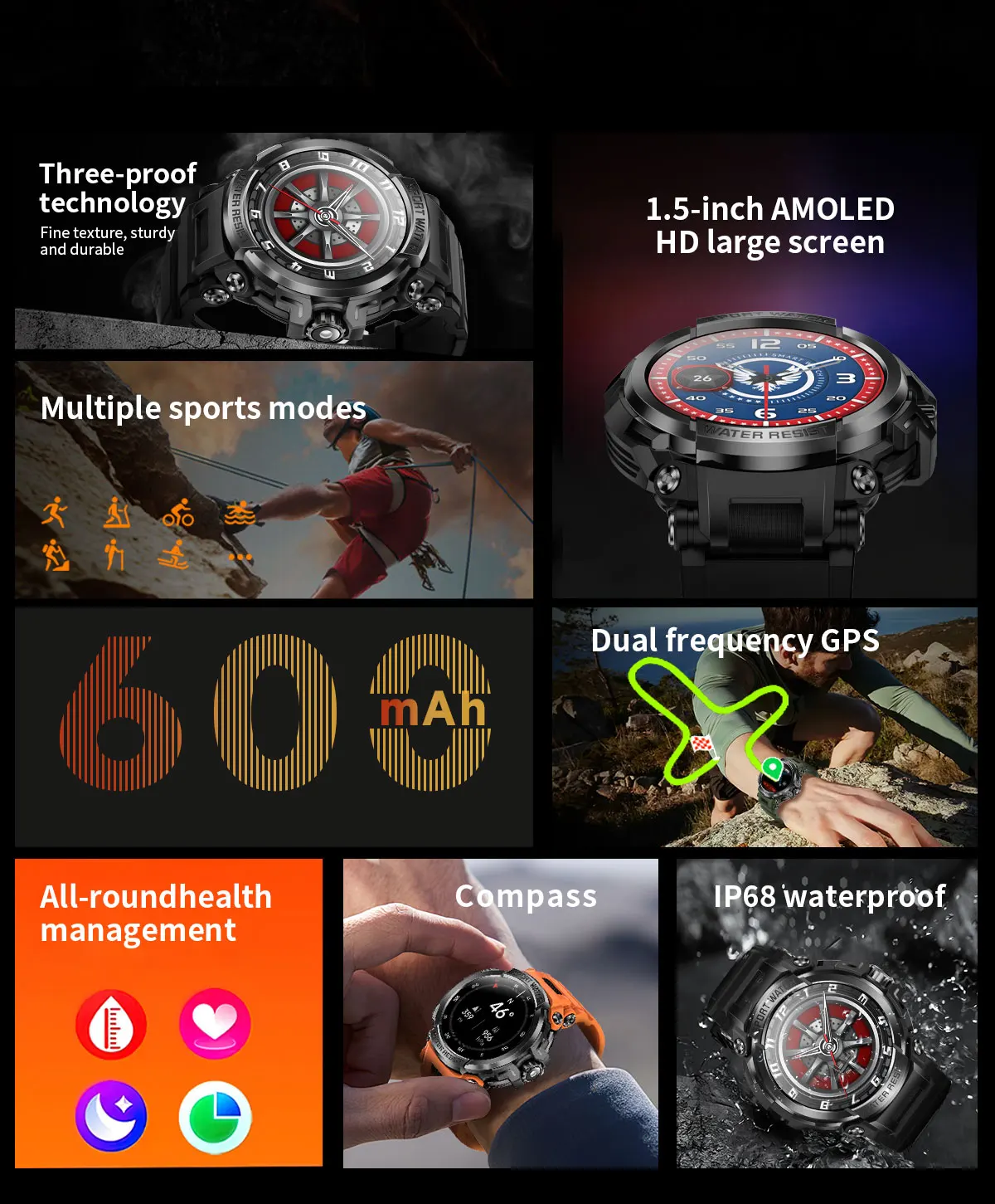 Altigear® – GPS Smartwatch with Compass & Altimeter | 600mAh Battery, AMOLED Display, Bluetooth Call, IP68 Waterproof