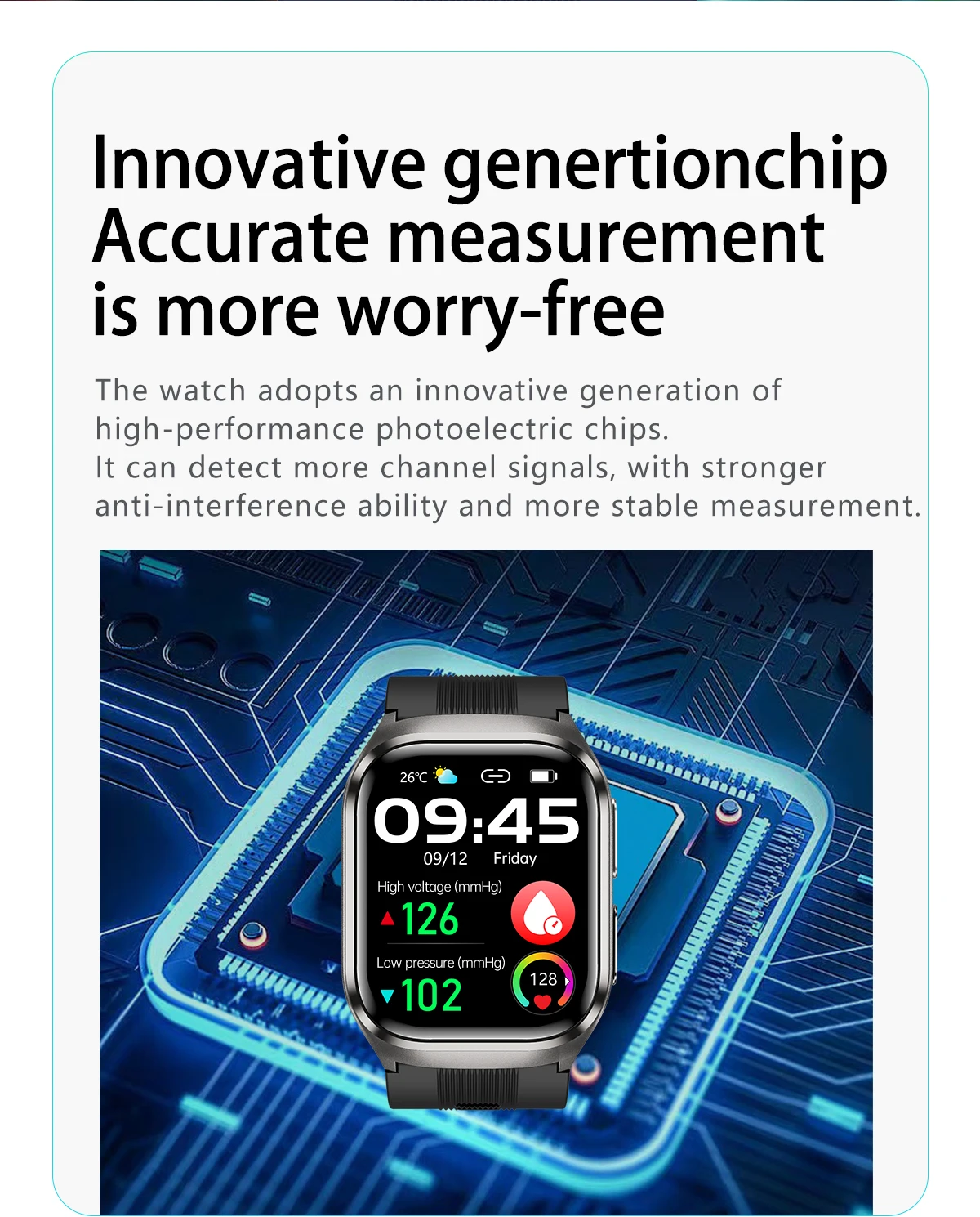 • Advanced tracking suite: Heart rate, SpO₂, body temperature, sleep quality, stress, uric acid, blood lipids, and more.