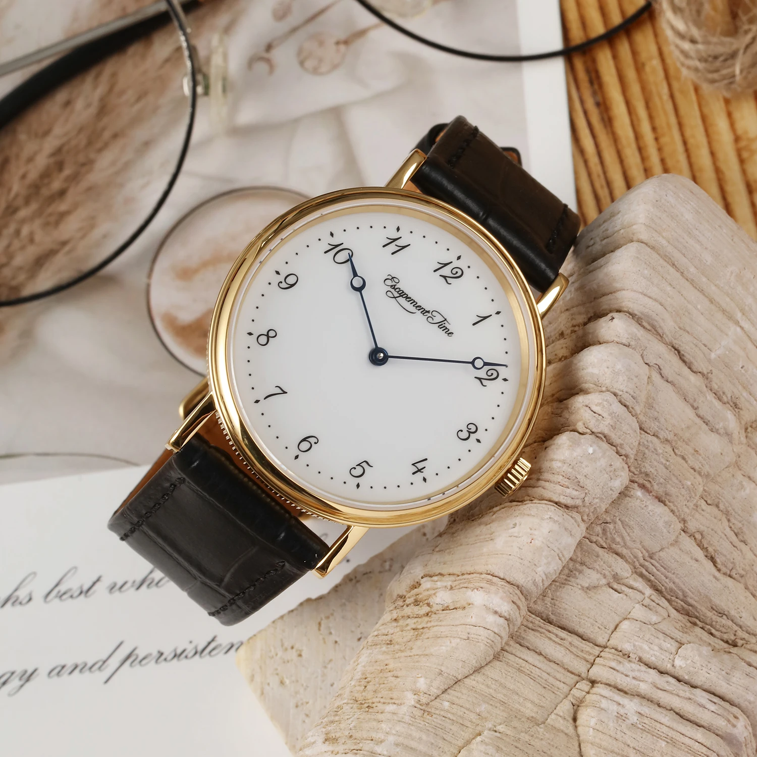 The Avennoir® Blancurel 38 embodies timeless elegance with its pristine enamel dial, heat-blued hands, and the dependable Citizen Miyota 2025 movement (Japan) at its core.