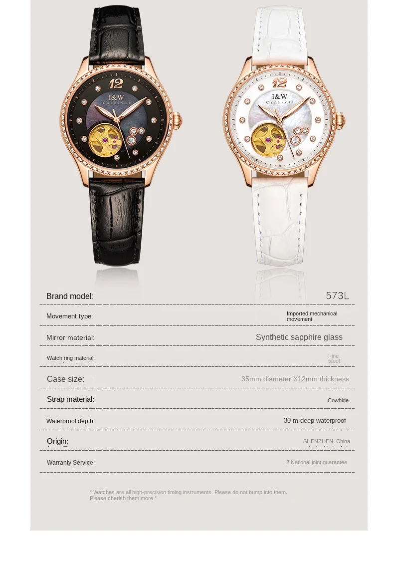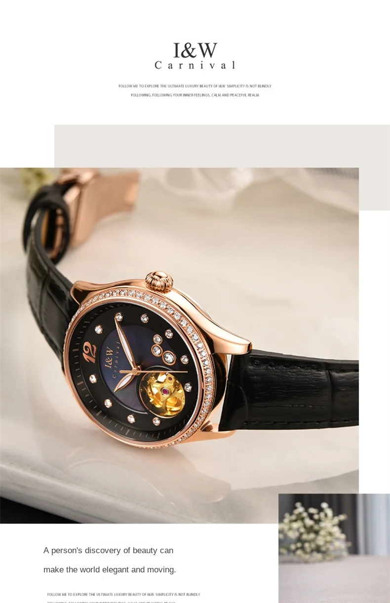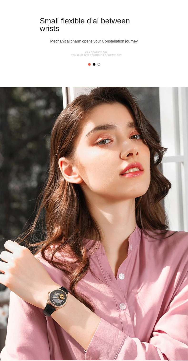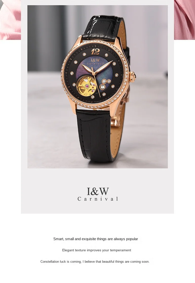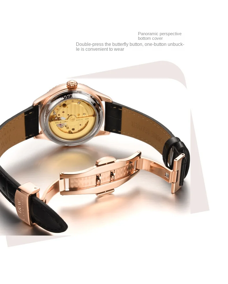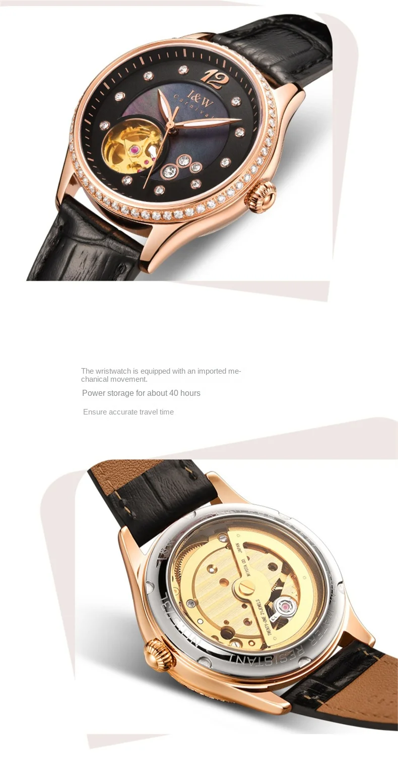 The see-through dial with luminous hands adds sophistication, while its 3ATM water resistance and hidden clasp ensure practicality and comfort. Elisoria® is a true embodiment of timeless femininity with a mechanical soul.