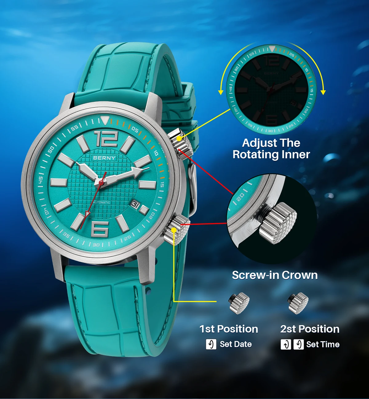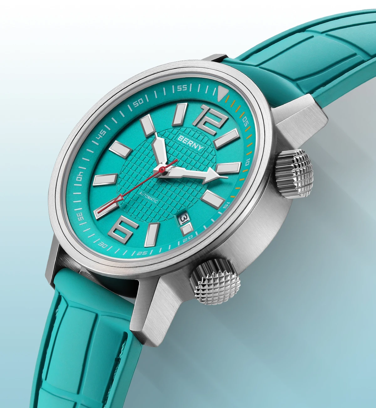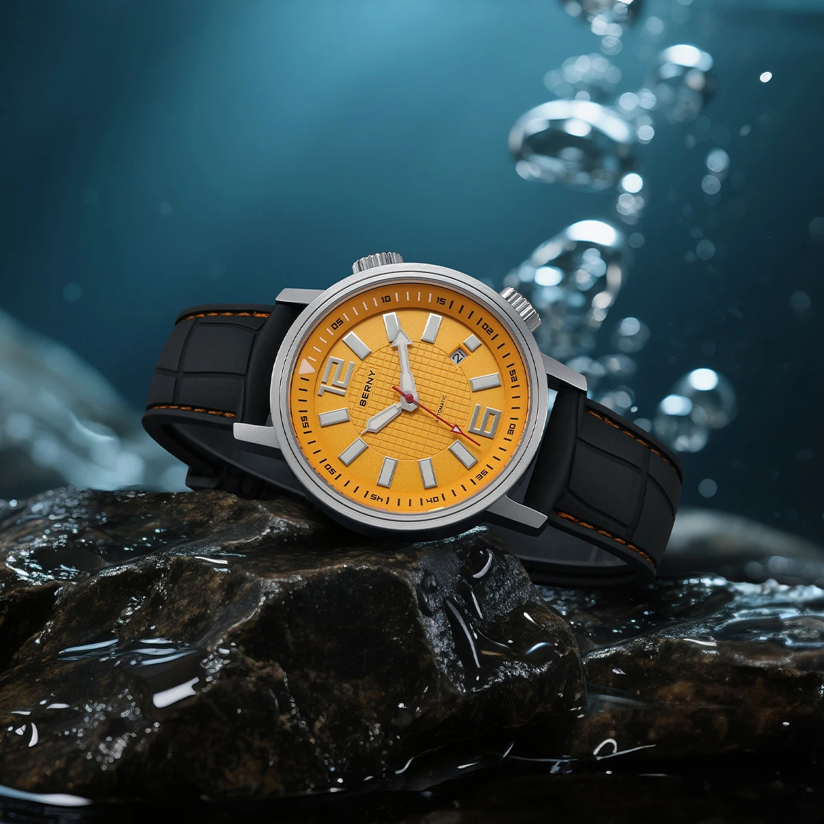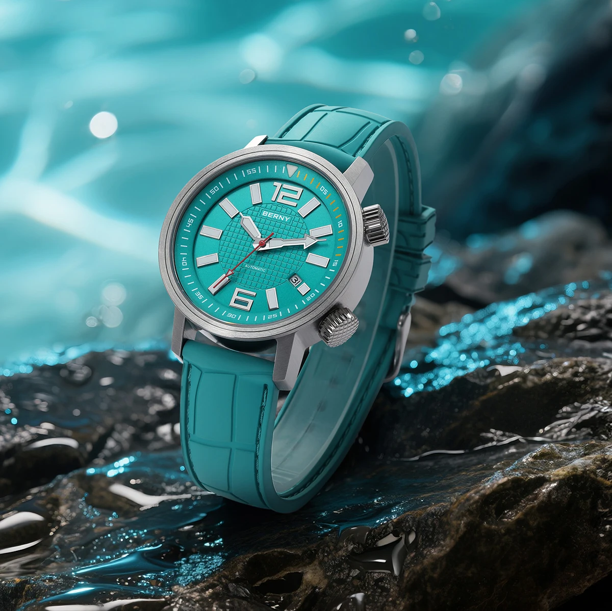 Built for underwater adventurers, the Kharvex® Deepcore 44 embodies rugged endurance with refined precision. Featuring a robust Miyota 8215 automatic movement, dual sapphire crystal, and a resilient fluororubber strap, it’s ready to face the deep with confidence and style.