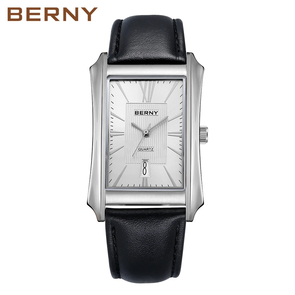 Luvrex® – Rectoné 301 | Men's Rectangle Quartz Watch with Genuine Leather Strap – 30M Waterproof Business Elegance