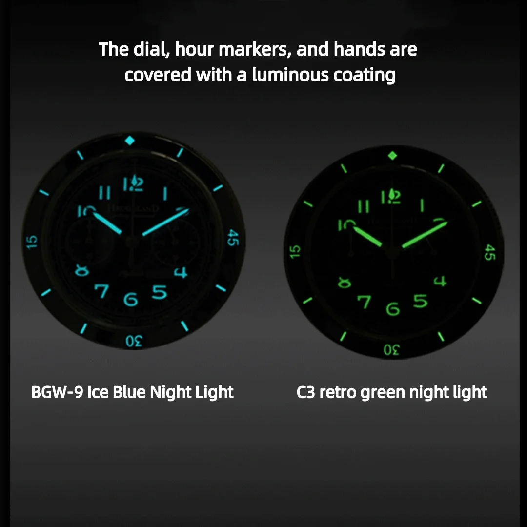 Modern Functions: Chronograph stopwatch, luminous hands for night visibility